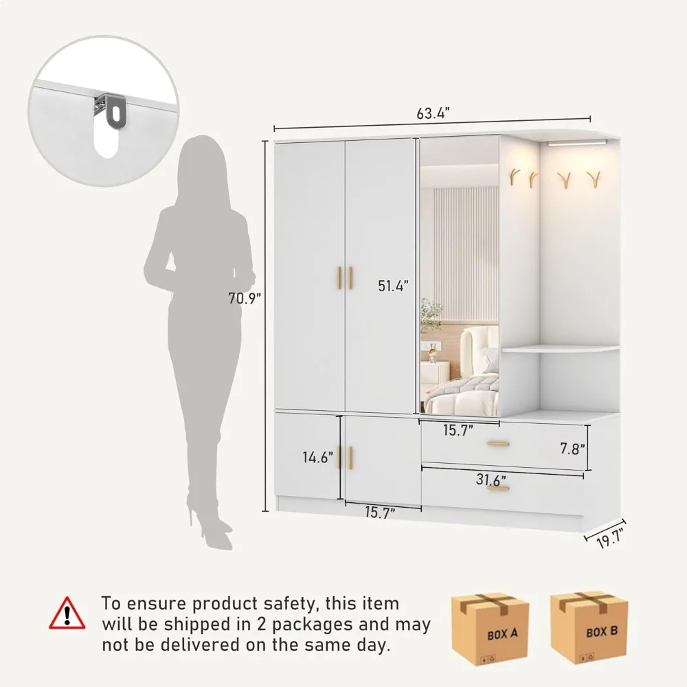- Buy with Confidence: We ship in 2 packages, which may not arrive at the same time. Our wardrobe storage cabinets include instructions and installation videos. Overall size: 19.7″D x 63″W x 70.8″H.