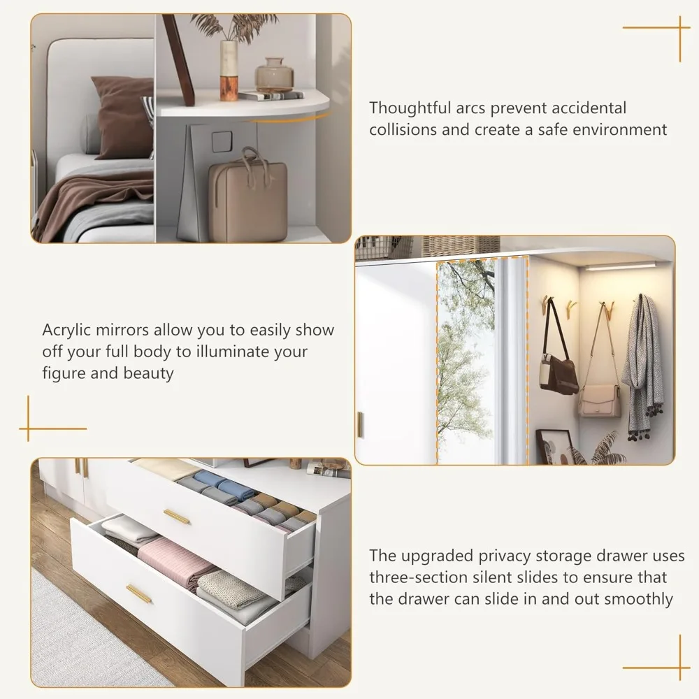 - Full-Size Mirror: The acrylic mirror embedded in the cabinet door is more stable and less prone to breakage than a regular mirror, which can help you in the dressing process. Mirror size:51.2″D x 14.4″W.